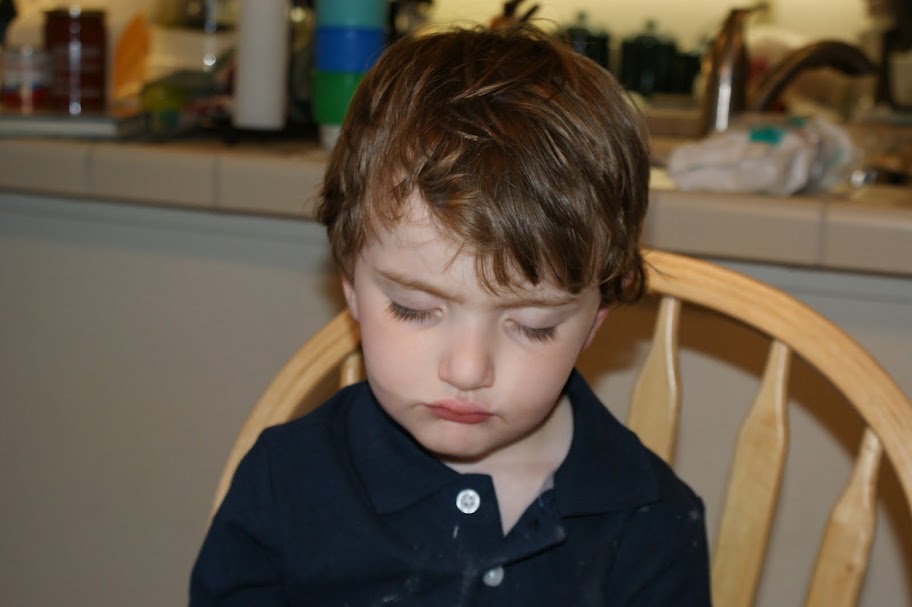 Trying to get some food into him before putting him down for the night. He was OUT for the night and it was only 6:00! ha ha What a good daddy!